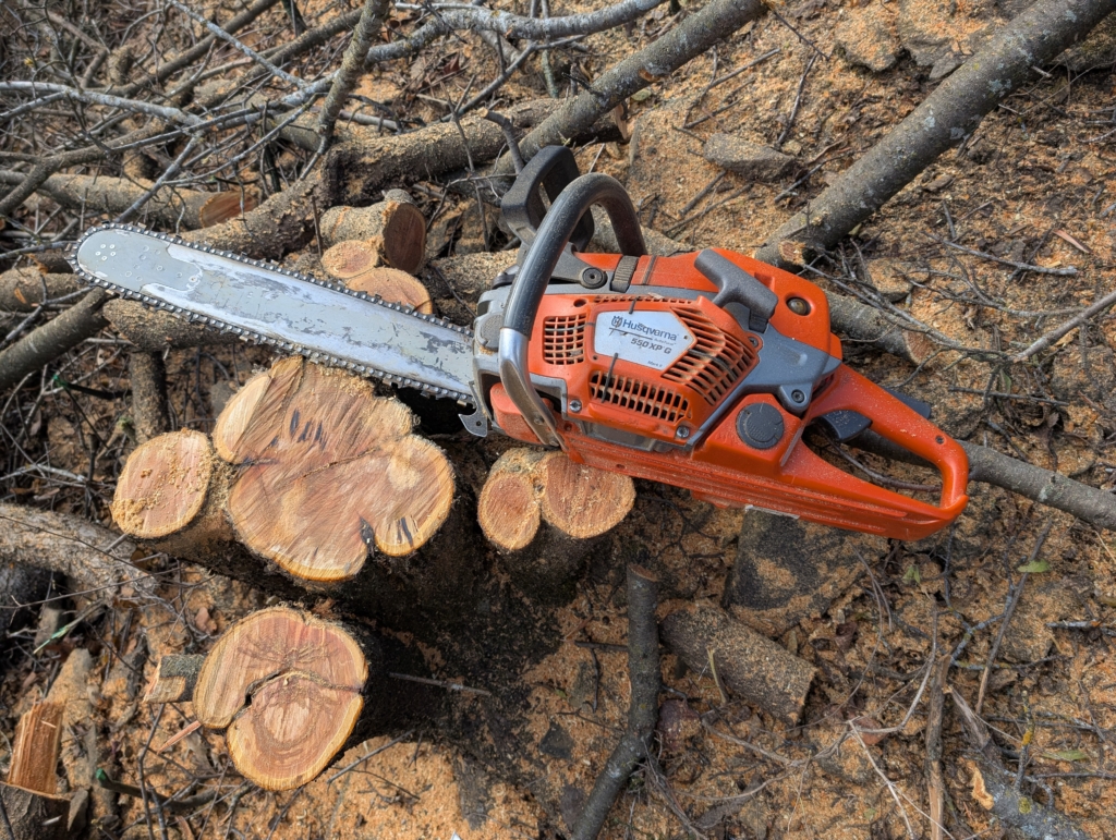 A note about saw size: most of the brush-clearing work that you might do doesn’t need a huge saw. I run an 18” bar on my saw, and I find that to be a good fit for me. A shorter bar would also be sufficient, I just appreciate the slightly longer reach I get with my 18”. You do want to be sure your saw remains somewhat balanced rather than being overly front heavy with a too-long bar. Every so often I’ll have to bring in an even larger saw to deal with something special, but I really don’t enjoy lugging a heavy saw around all day.