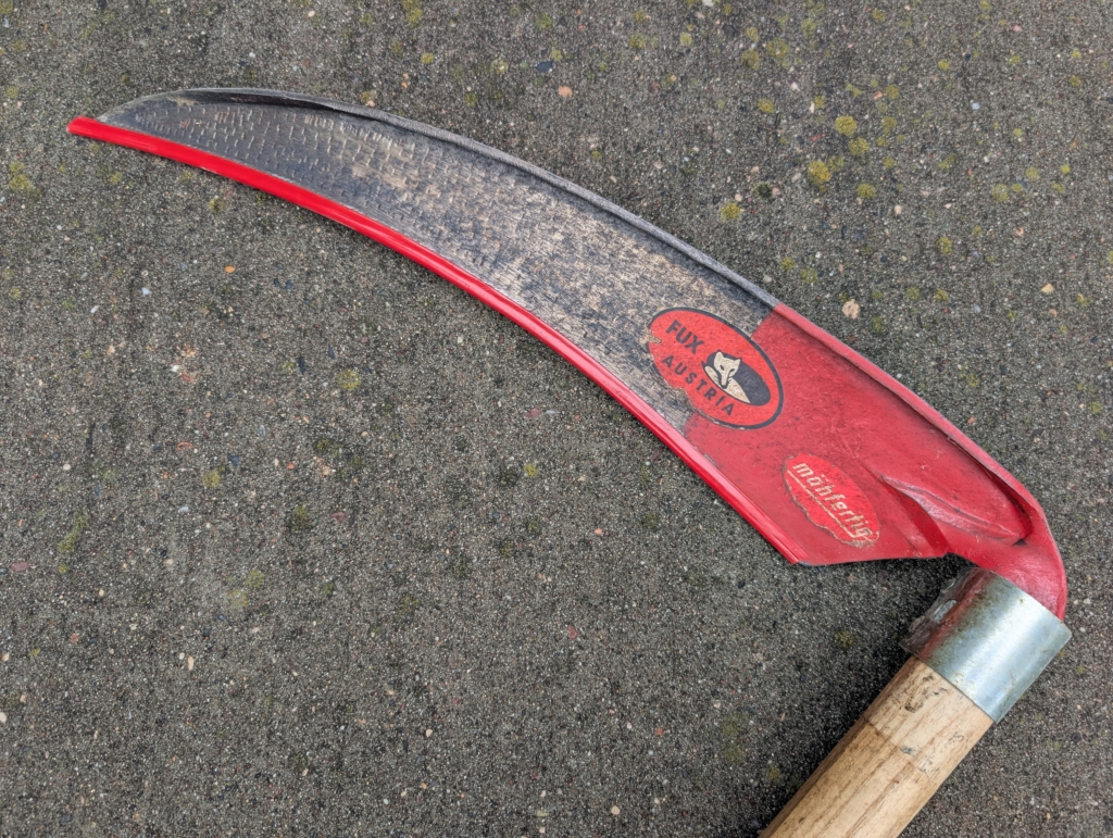 A high quality scythe blade, on a lightweight ‘snath’ (handle) made to your own body dimensions can be a pleasure to use. We are fortunate in my neighborhood to have a local scythe builder just a few minutes away. There are certainly times at home when I prefer to swap my noisy brush-cutter and PPE for a quiet, more enjoyable (even aesthetic) work experience. That said, if there are more than a few woody plants hiding in my mowing project, the scythe effectiveness becomes more limited. Using a scythe can be a bit of pleasant therapy.